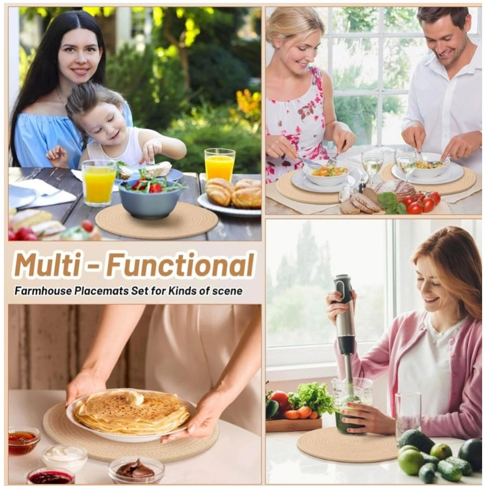 Generic Cotton Dining Table Round Placemat Mats Set of 4 (Beige)