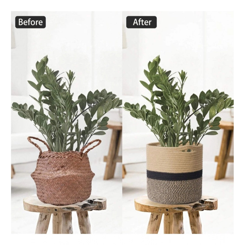 Generic Cotton Large Woven Storage Basket 11x11 Inch Pack of 1 (Beige)