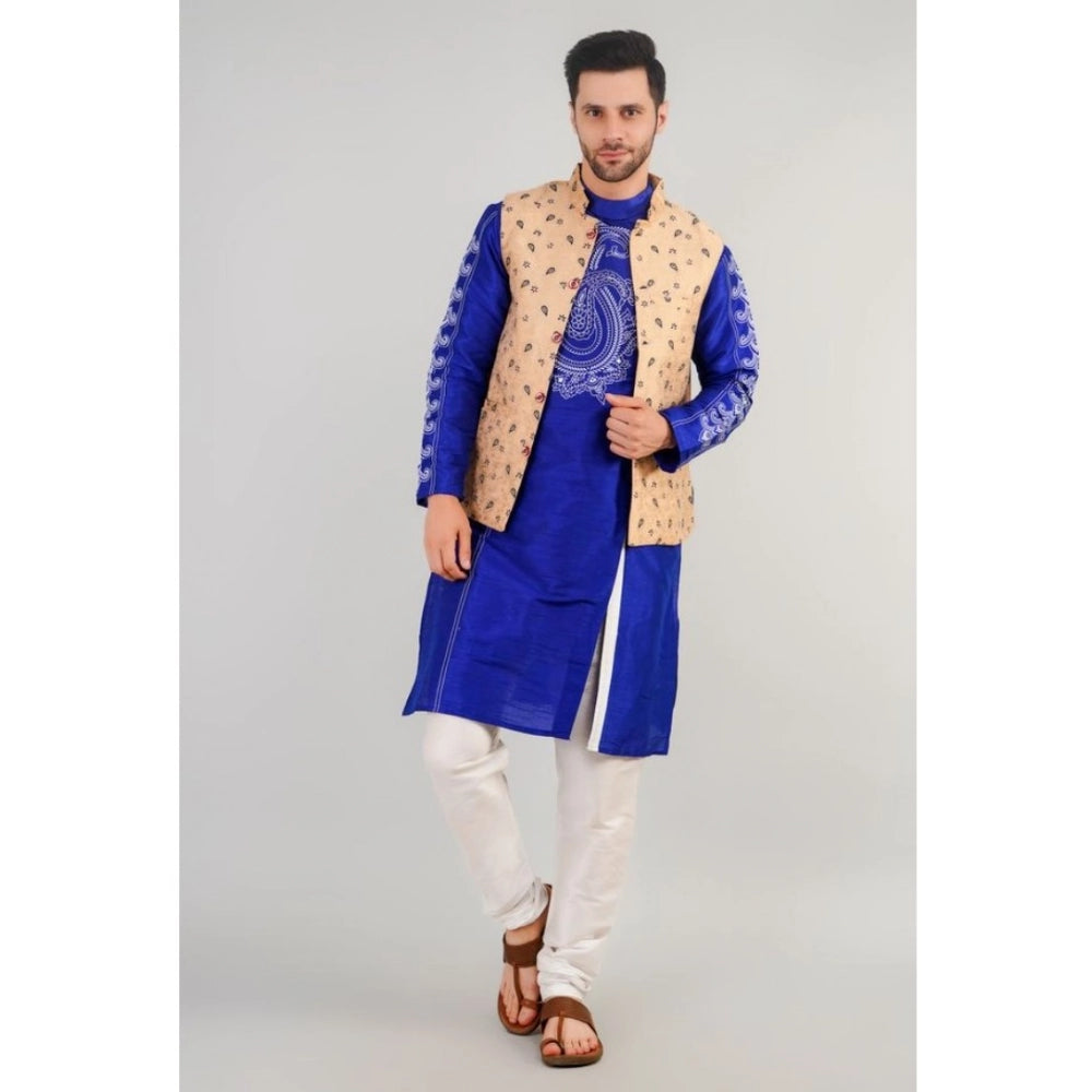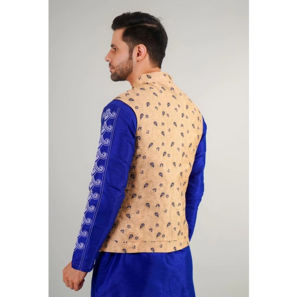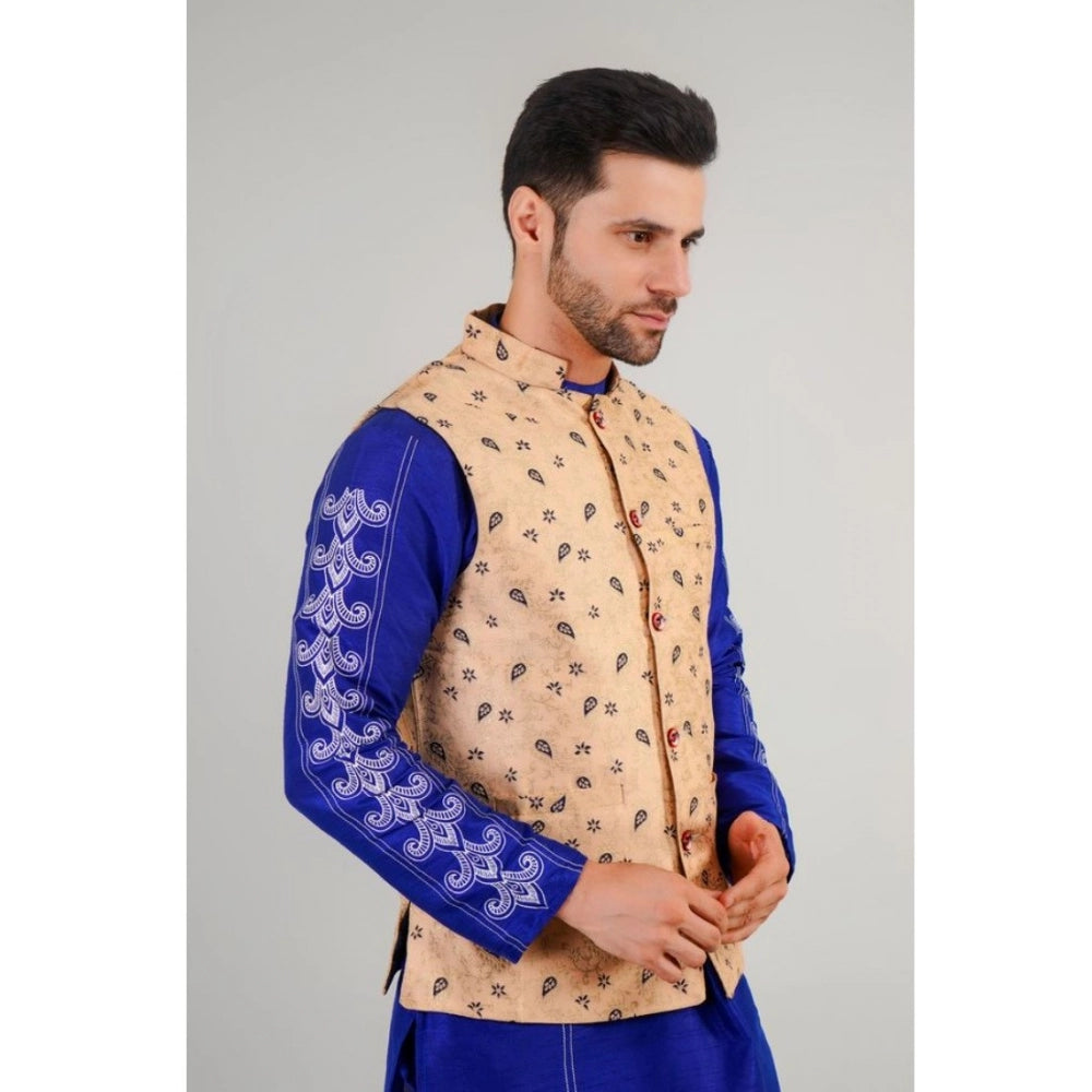 Generic Men's Jacquard Self-Design Sleeveless Mandarin Neck Waistcoat (Beige)