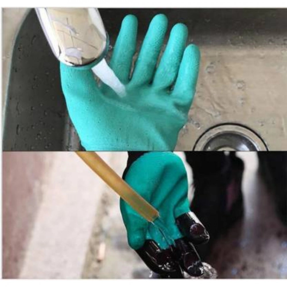 Generic Pack Of_2 Heavy Duty Garden Farming Gloves Washable With Right Hand Fingertips Claws (Color: Assorted)