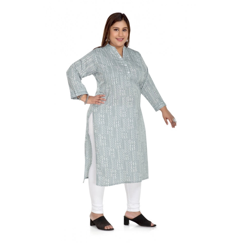 Women's Casual 3/4th Sleeve Imported Synthetix Full printed Straight Kurti • Color: Grey, • Material: Imported SynthetixNeck Type:Mandarin Collar, • Sleeve Type: 3/4th Sleeve • Work Type: Full printed, • Slit: Side Slit • Disclaimer: The color of actual product may vary slightly from the images provided due to photographic lighting conditions and difference in screen resolutions.