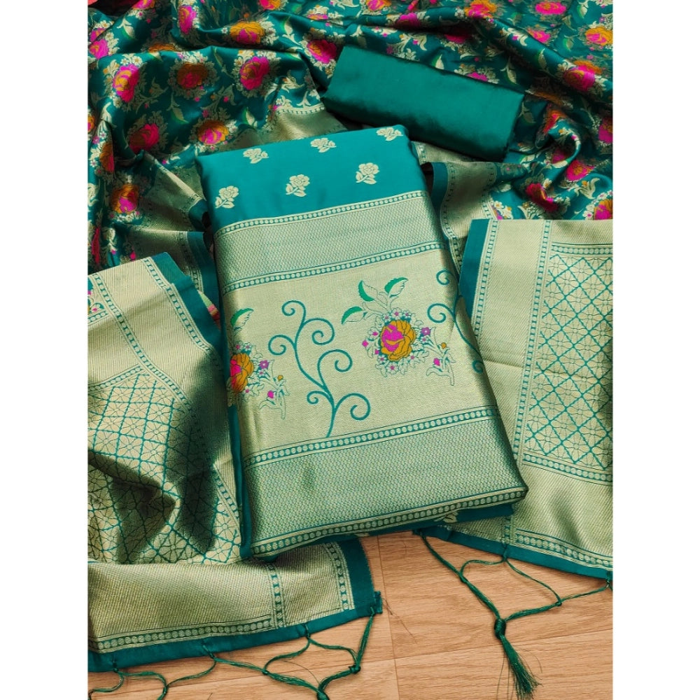 Women's Banarasi Silk Printed Unstitched Salwar Suit Material With Dupatta
