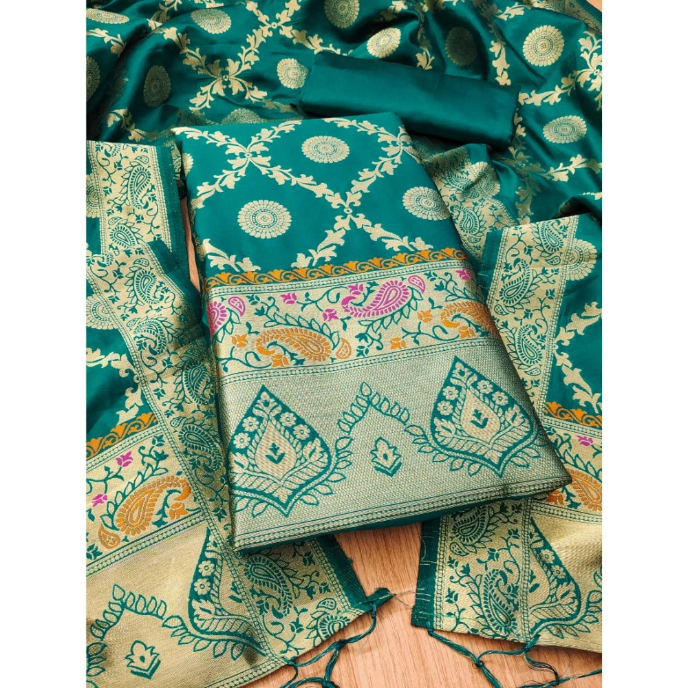 Generic Women's Banarasi Silk Printed Unstitched Salwar Suit Material With Dupatta (Rama, 3Mtrs)