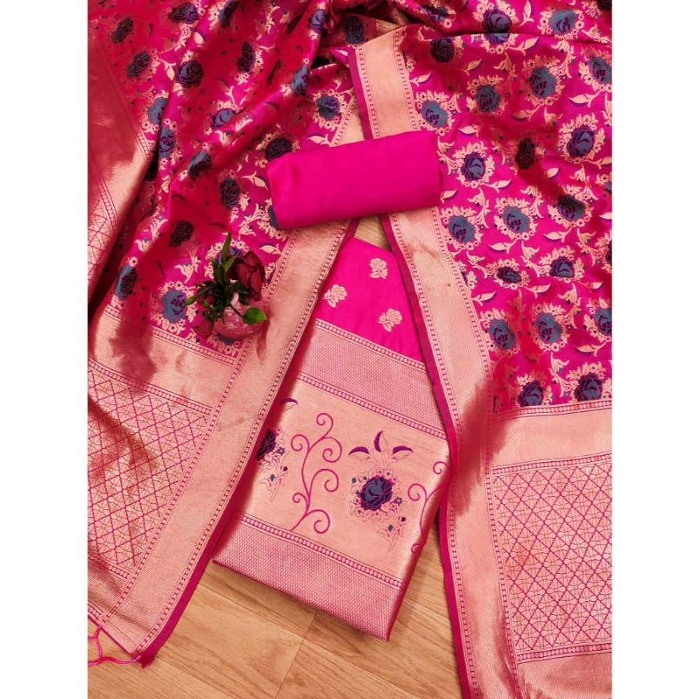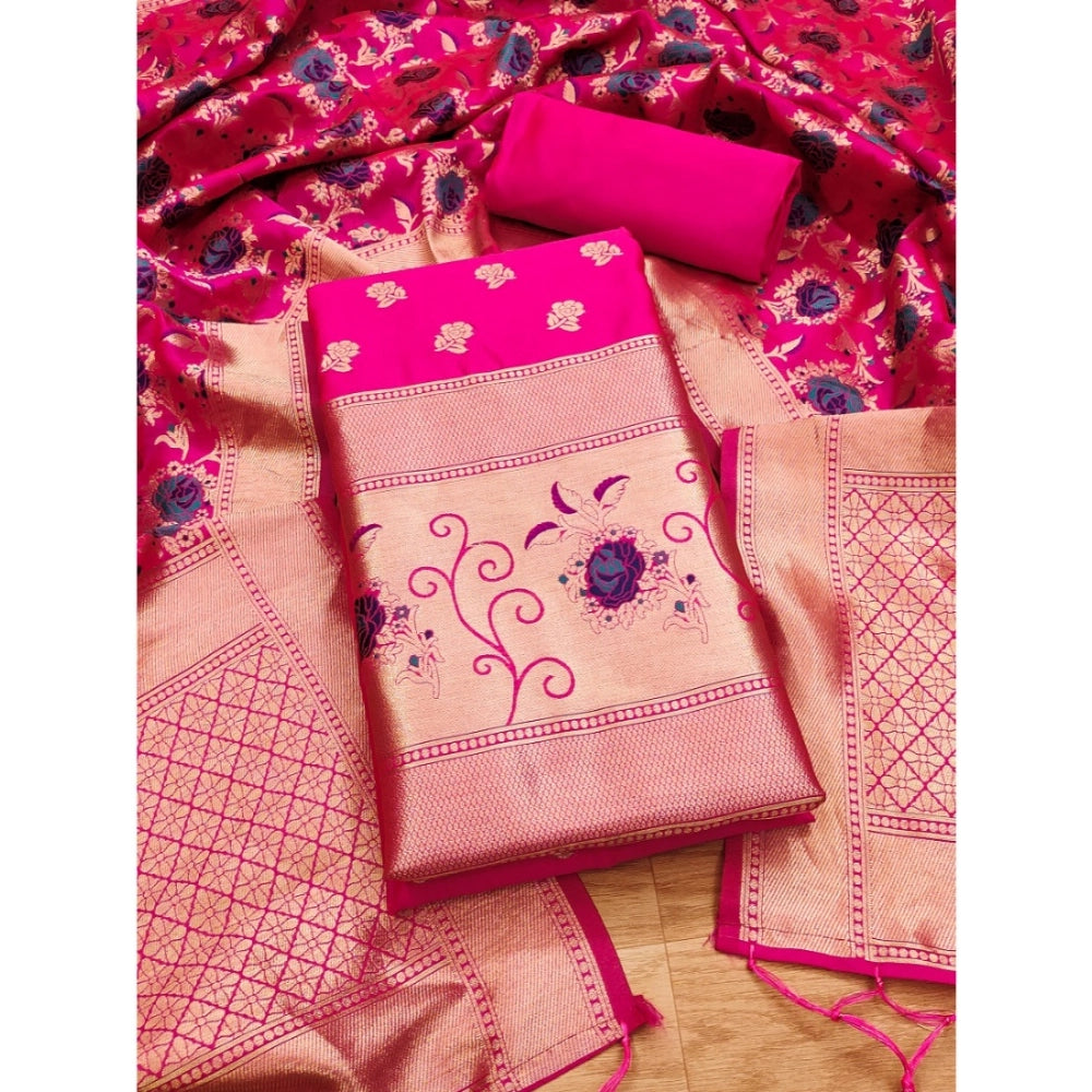 Generic Women's Banarasi Silk Printed Unstitched Salwar Suit Material With Dupatta (Rani, 3Mtrs)