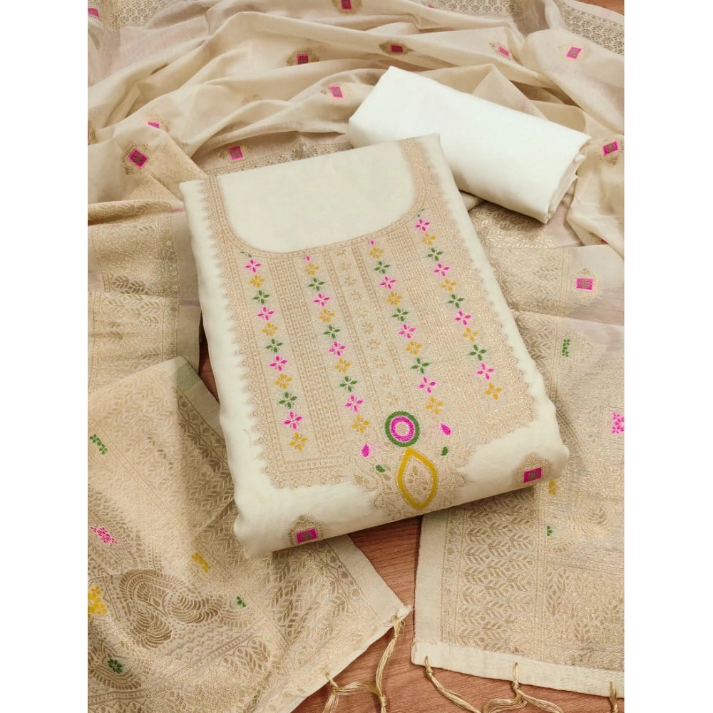 Generic Women's Banarasi Silk Printed Unstitched Salwar Suit Material With Dupatta (White, 3Mtrs)