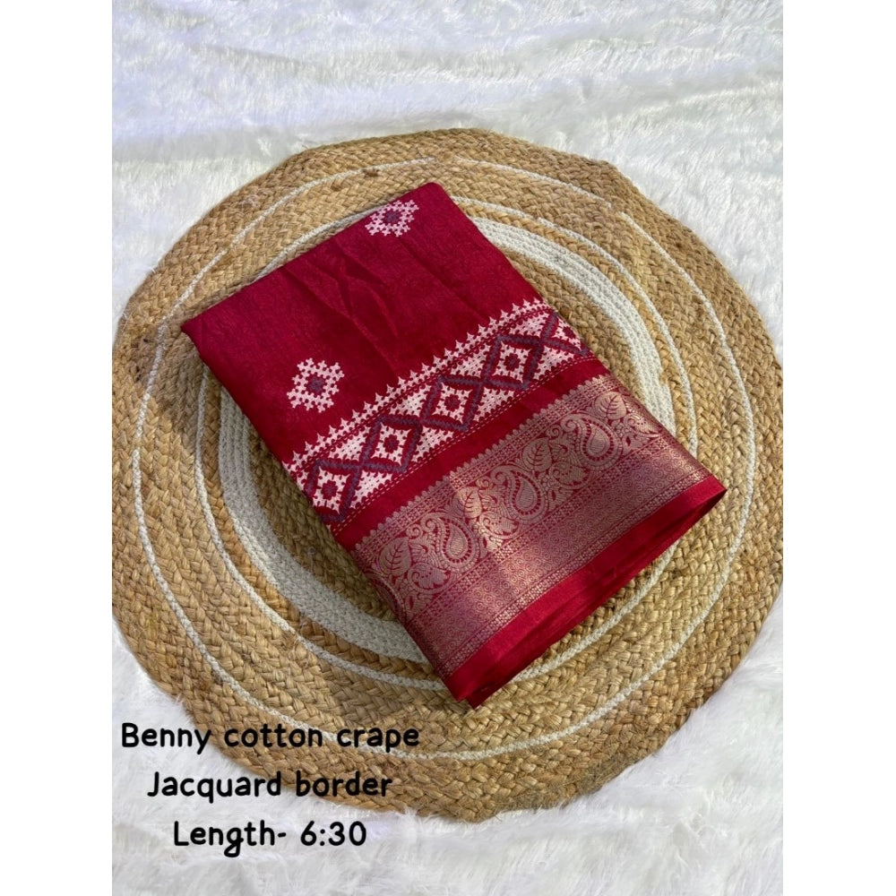 Women's Benny Crape Printed Saree With Unstitched Blouse 5.5Mtr