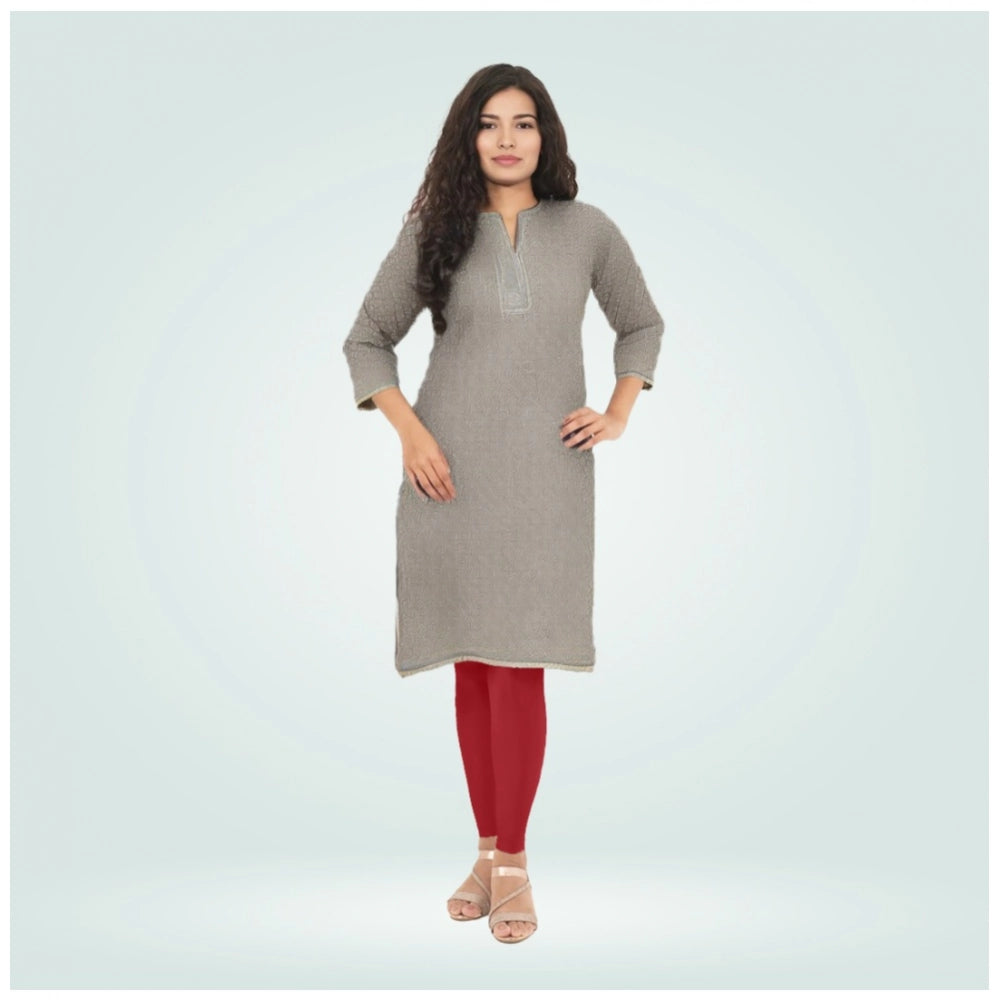 Generic Women's Cotton Blended Solid Shimmer Ankle leggings (Red Maroon)