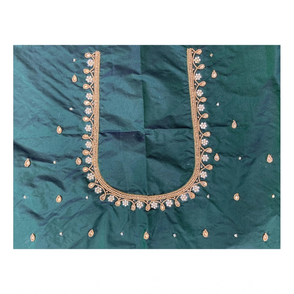 Generic Women's Cotton Silk Self Design Unstitched Blouse Piece (Green, 80-100 cm)