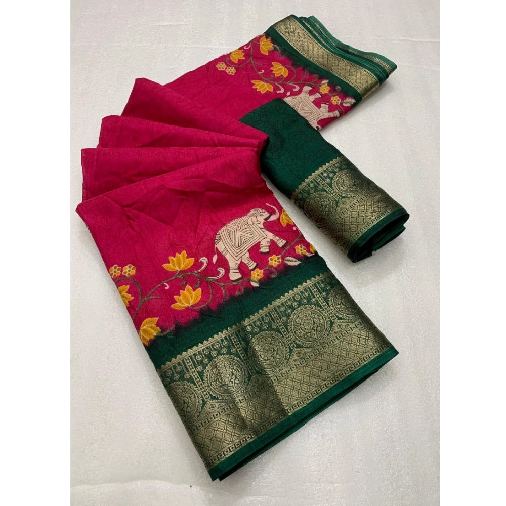 Generic Women's Dola Silk Printed Saree With Unstitched Blouse 5.5Mtr (Pink)