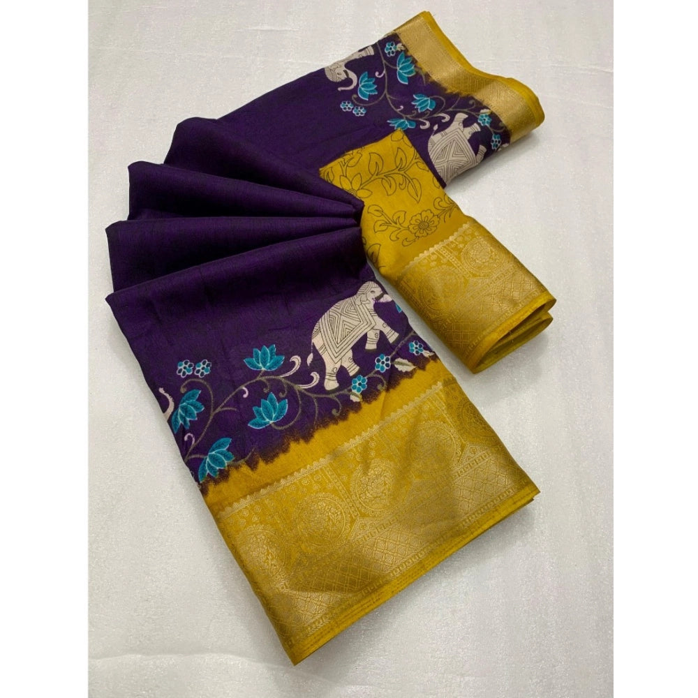 Generic Women's Dola Silk Printed Saree With Unstitched Blouse 5.5Mtr (Purple)