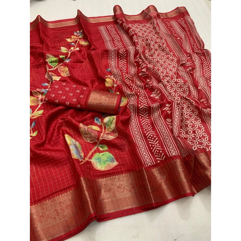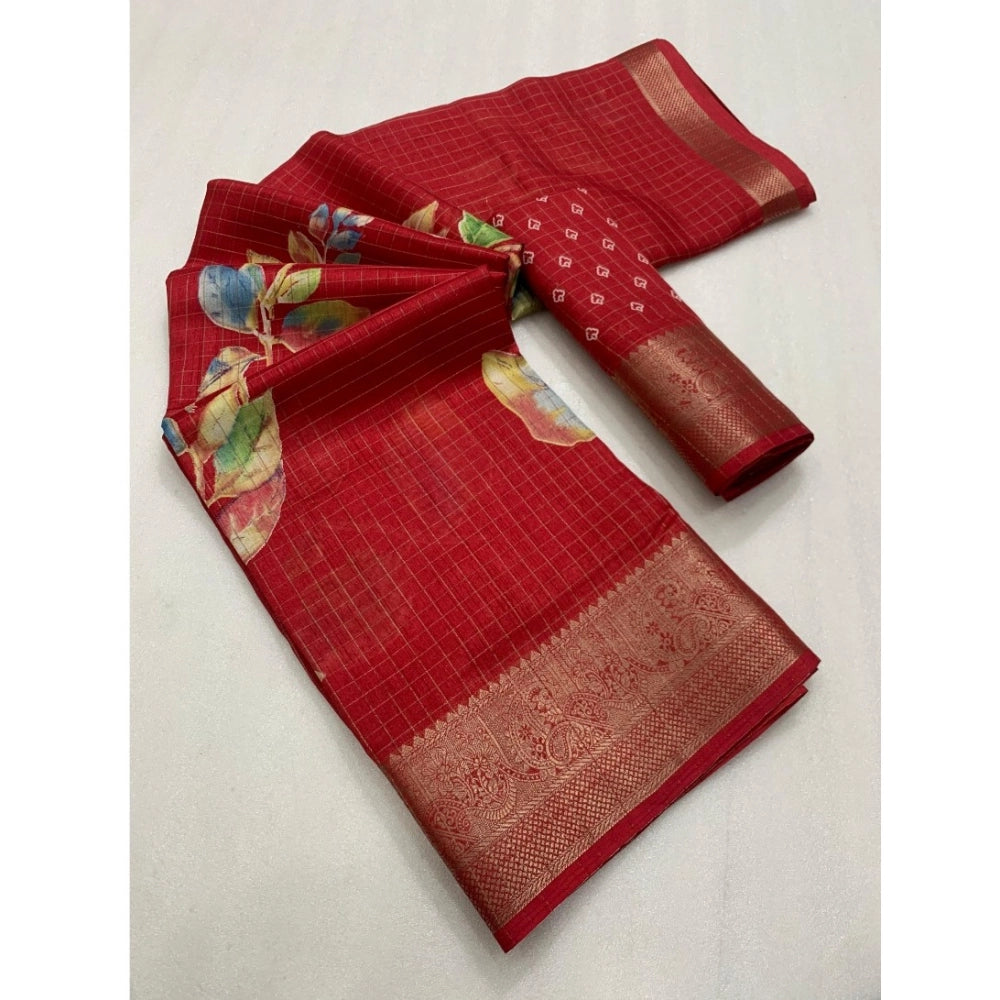 Generic Women's Dola Silk Printed Saree With Unstitched Blouse 5.5Mtr (Red)