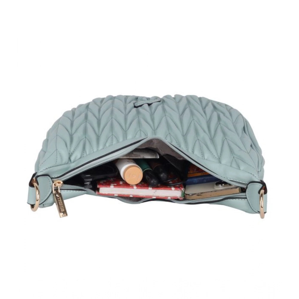 Generic Women's Faux Leather Textured Handbag (Blue)