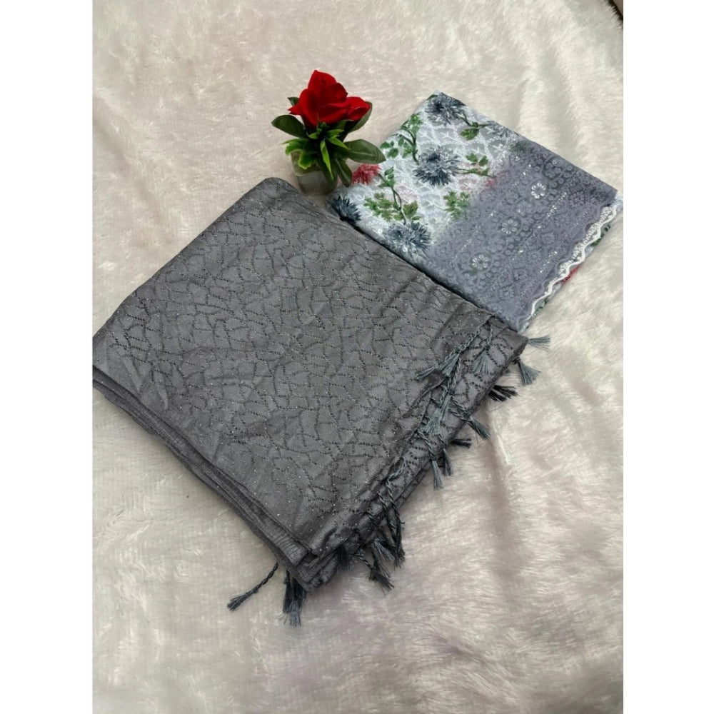 Generic Women's Georgette Embellished Saree With Unstitched Blouse (Grey, 5-5 Mtrs)