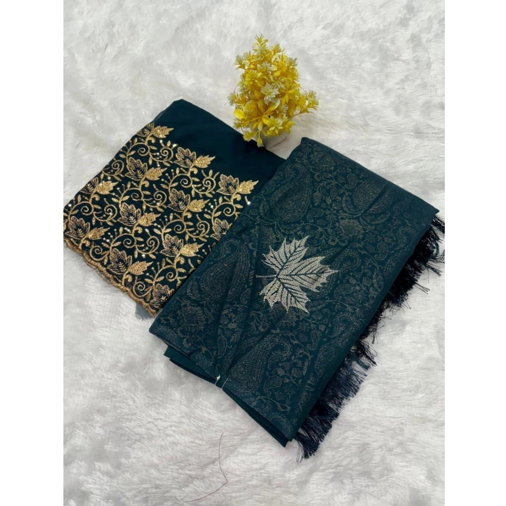 Generic Women's Georgette Printed Saree With Unstitched Blouse (Dark Blue, 5-5 Mtrs)