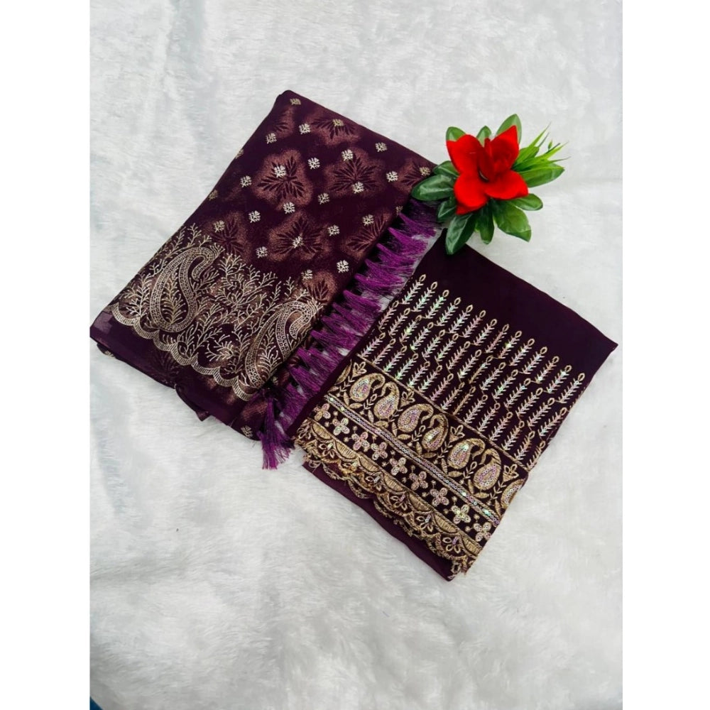Generic Women's Georgette Printed Saree With Unstitched Blouse (Magenta, 5-5 Mtrs)