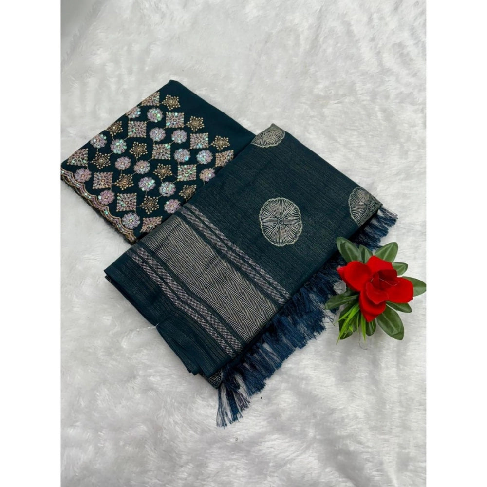 Generic Women's Georgette Printed Saree With Unstitched Blouse (Teal, 5-5 Mtrs)