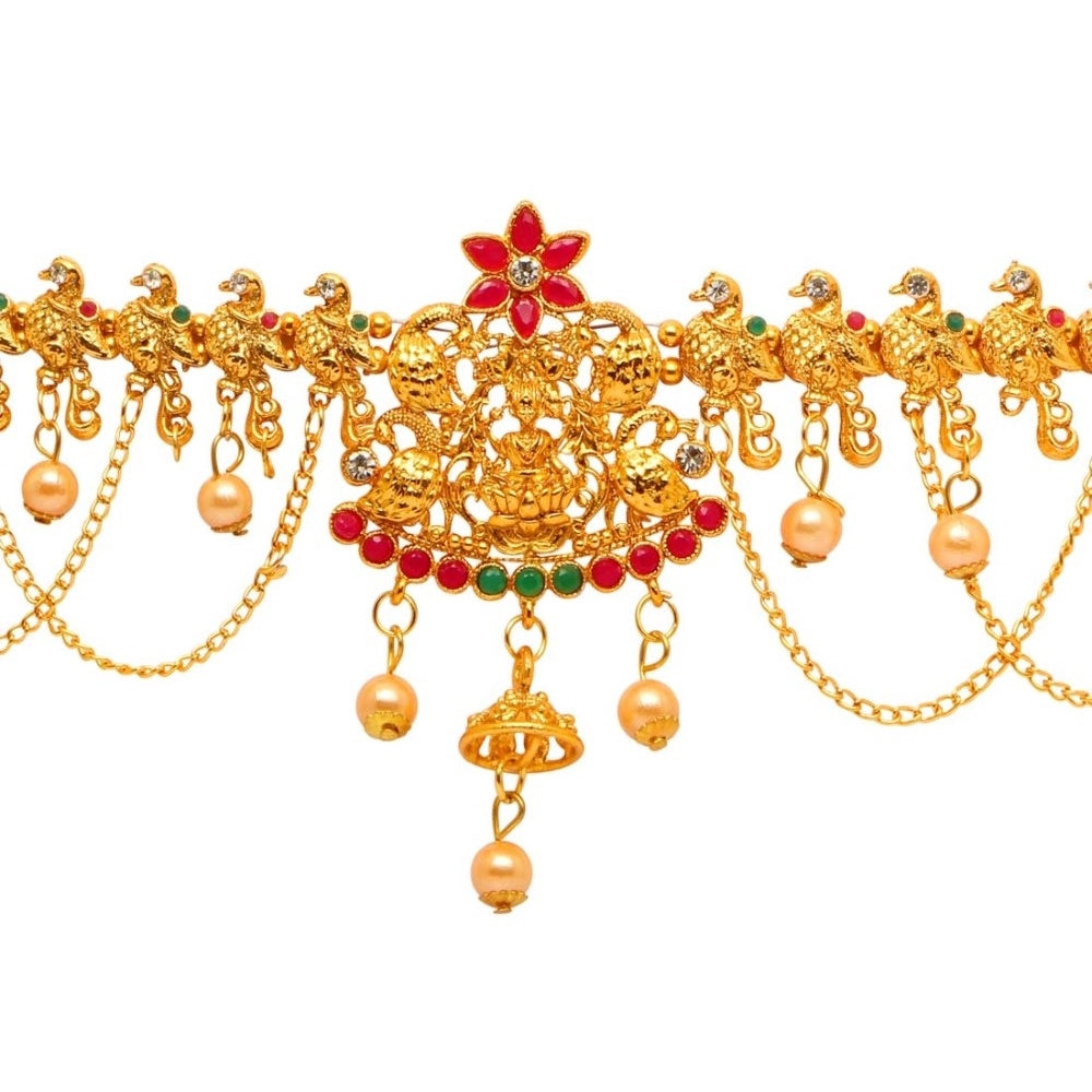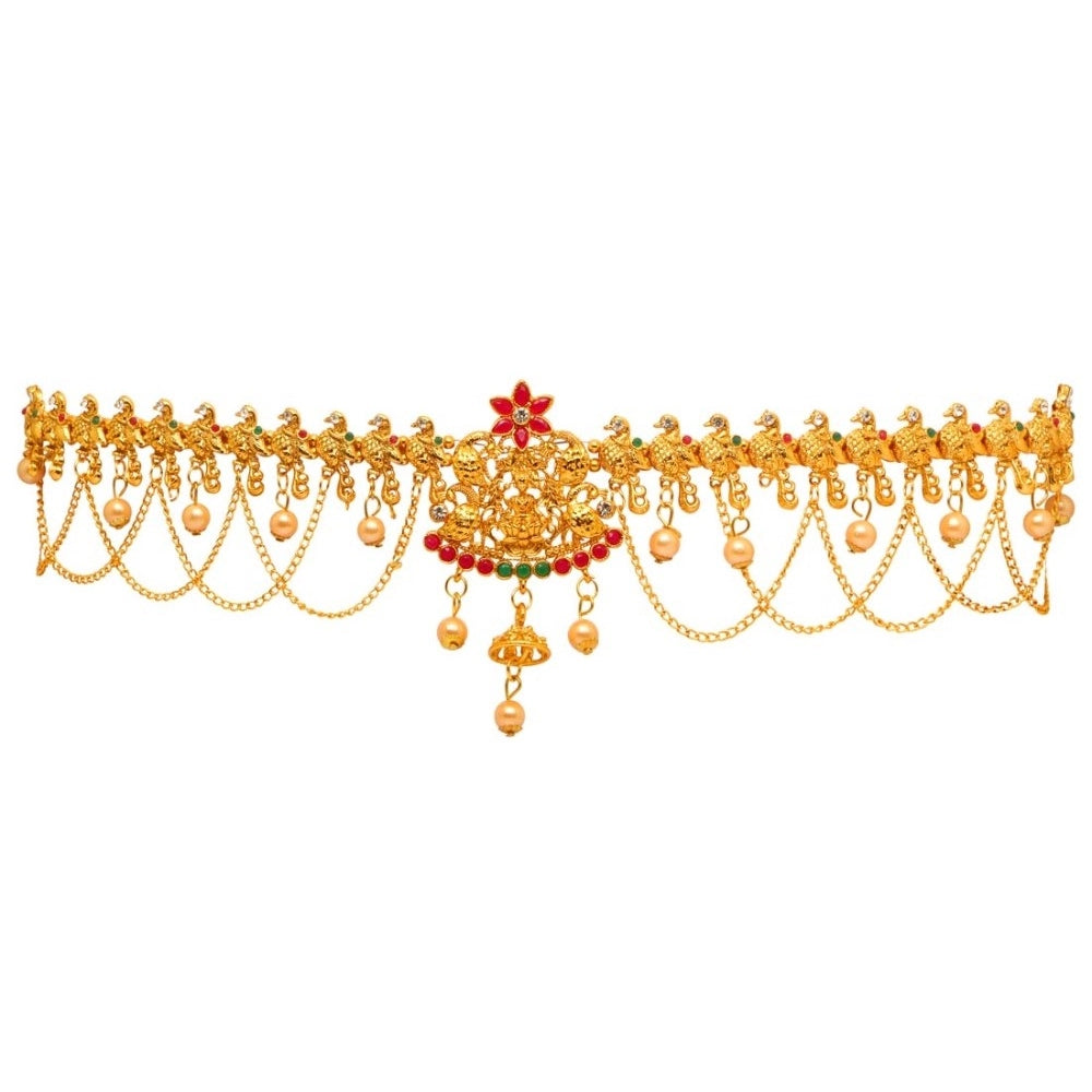 Generic Women's Maroon & Green Color Glass Stone Kamarband Adjustable Chain