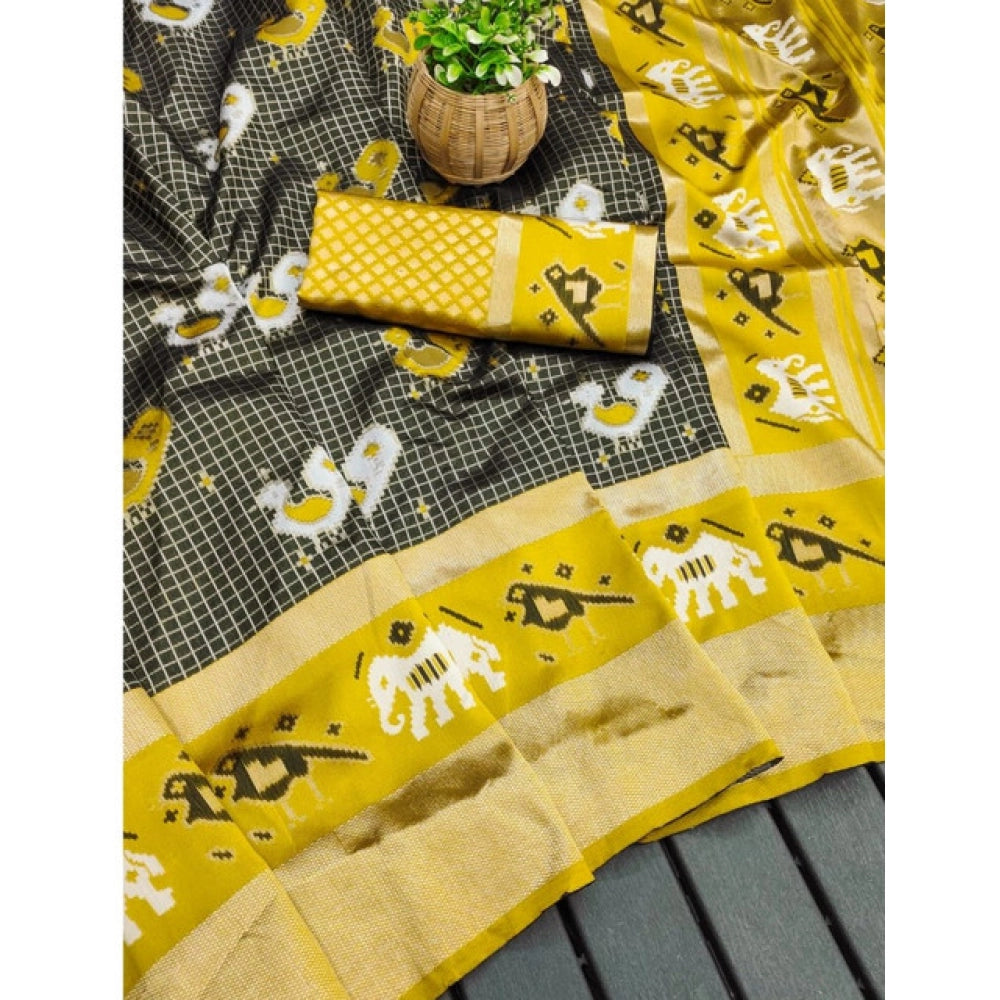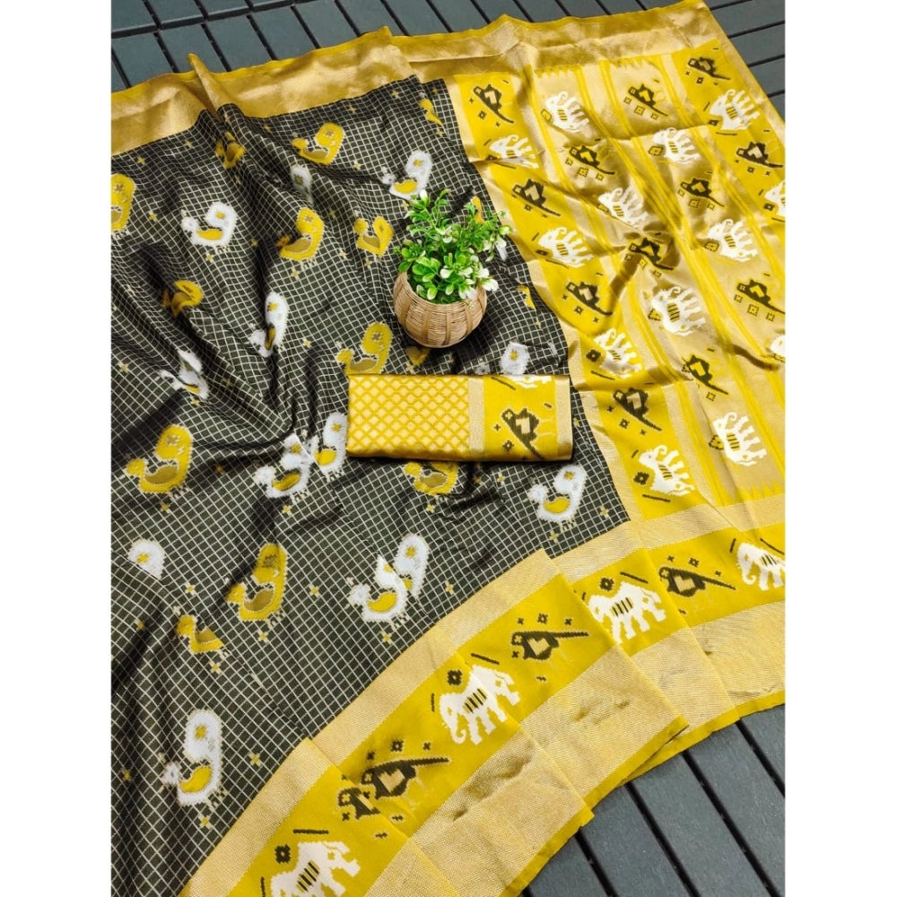 Women's Soft Litchi Silk Jacquard Work Saree With Unstitched Blouse