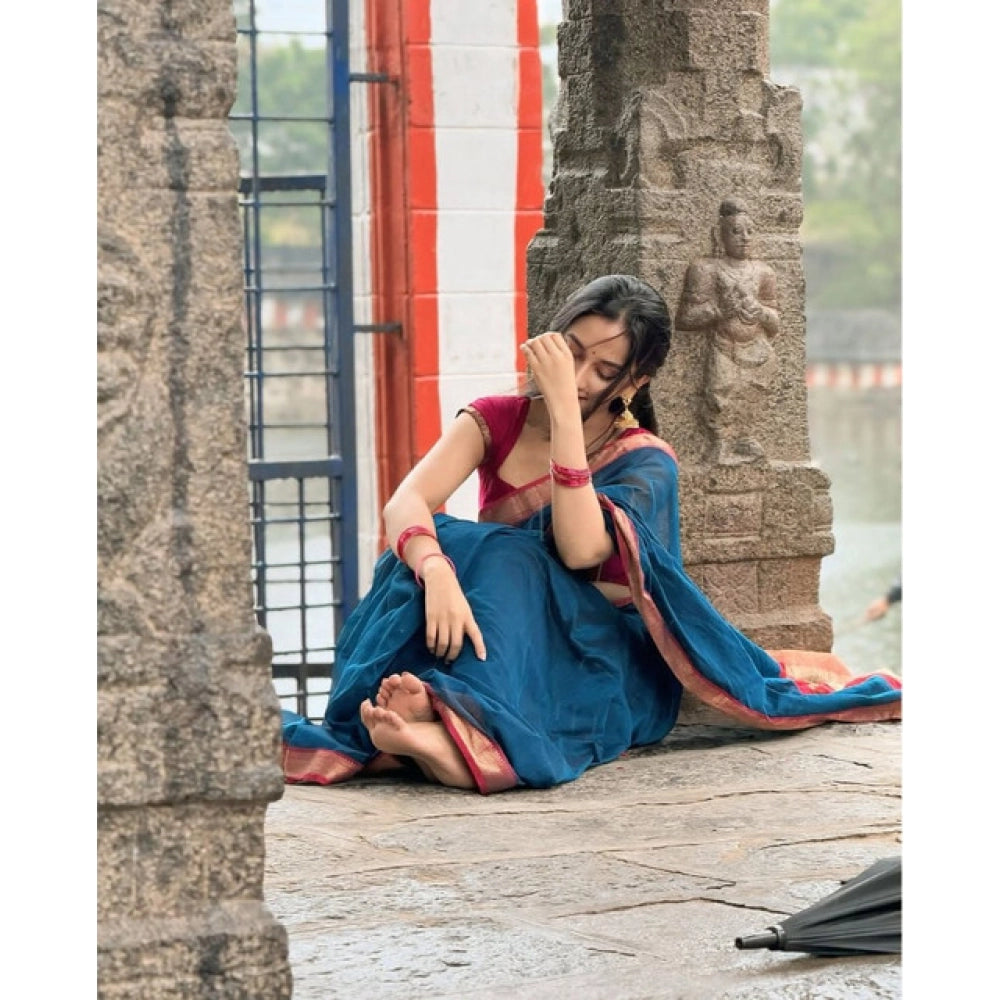 Women's Soft Litchi Silk Jacquard Work Saree With Unstitched Blouse