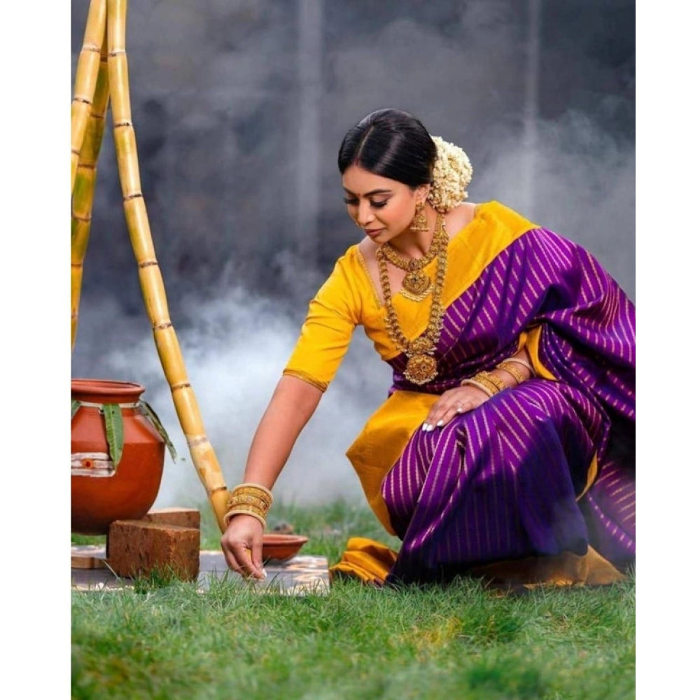 Generic Women's Soft Litchi Silk Jacquard Work Saree With Unstitched Blouse 5.5Mtr (Purple)