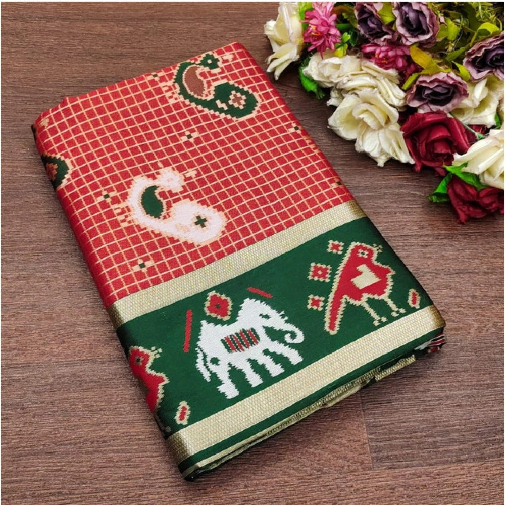Generic Women's Soft Litchi Silk Jacquard Work Saree With Unstitched Blouse 5.5Mtr (Red-Green)
